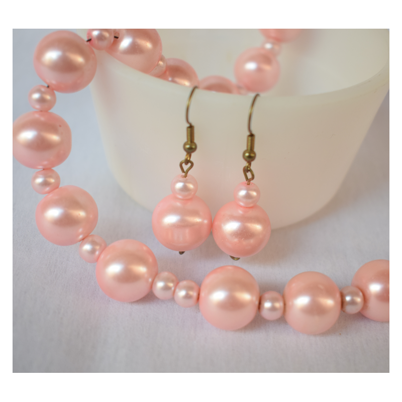 Add a soft, feminine touch to your look with this pink pearl necklace and matching earrings set. The gentle pink pearls have a smooth, shiny finish that looks elegant and pairs easily with many outfits.